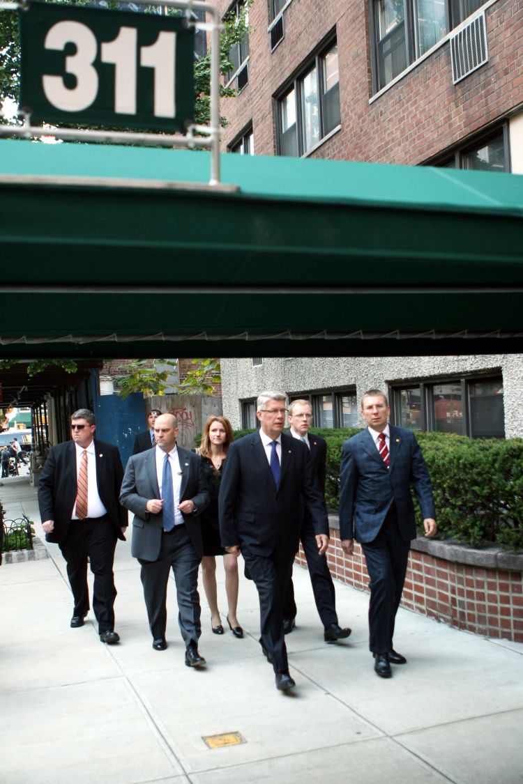 Protocol information: presidential protocol duties and other work details, proper ways to address the president of Latvia, use of presidential standard, protocol during visits, guidance on diplomatic gifts and dress code.