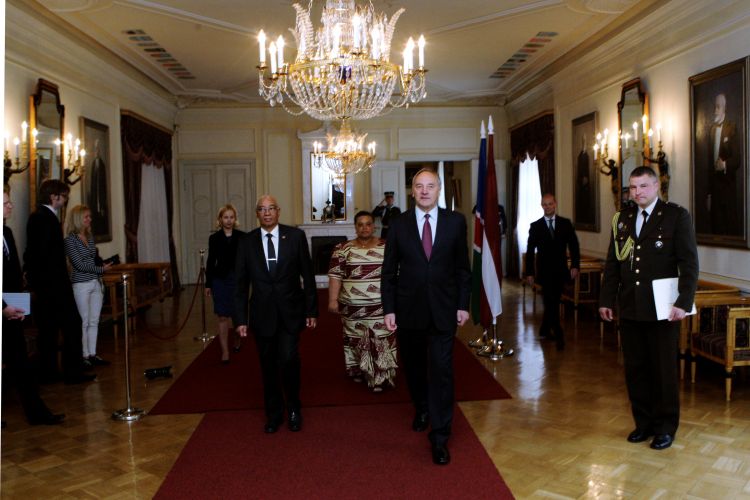 Protocol information: presidential protocol duties and other work details, proper ways to address the president of Latvia, use of presidential standard, protocol during visits, guidance on diplomatic gifts and dress code.