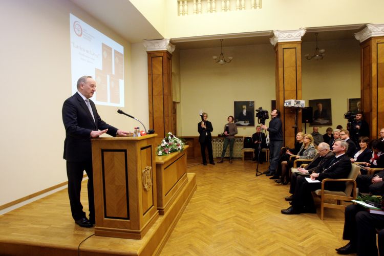 An address at a Latvian Academy of Sciences conference in relation to the presentation of the collection of scholarly papers “Latvians and Latvia”