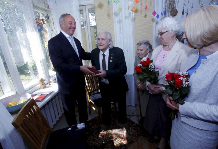 Awarding the Order of Viesturs to the member of the Latvian Association of National Soldiers, Mr Teodors Abels