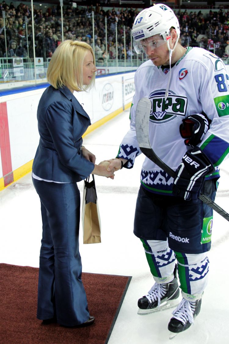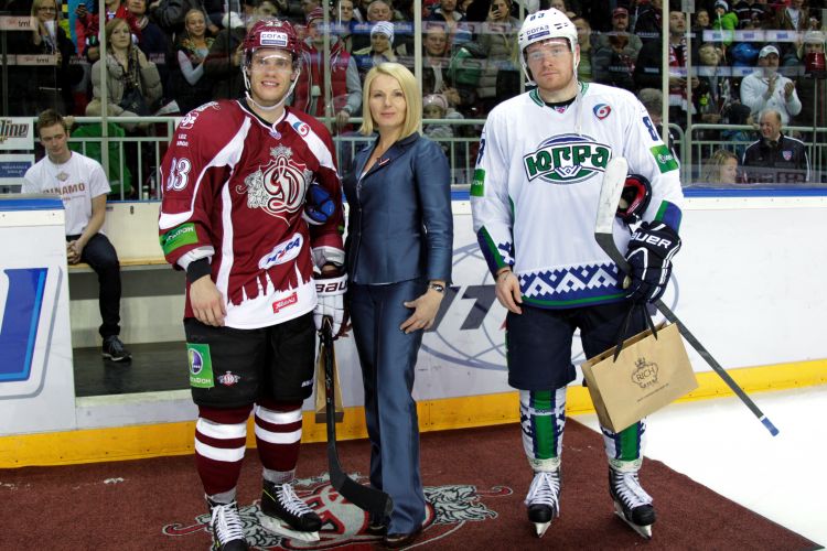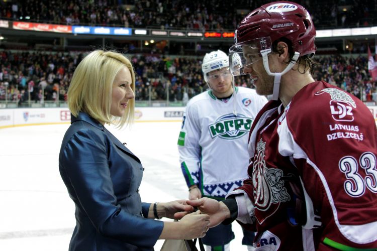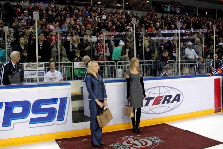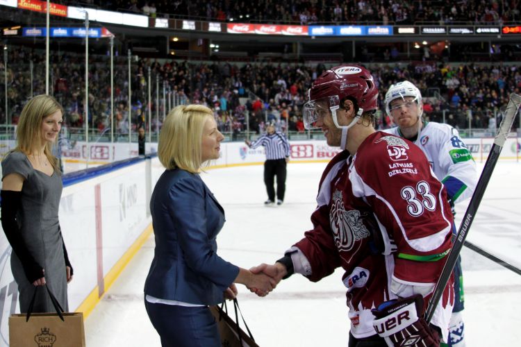 First Lady Dace Seisuma attends a Dinamo Rīga ice hockey game that was organized in support of the Sunny Days charity project