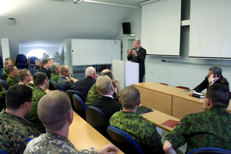 An lecture for students at the Baltic Defence College in Tartu, Estonia