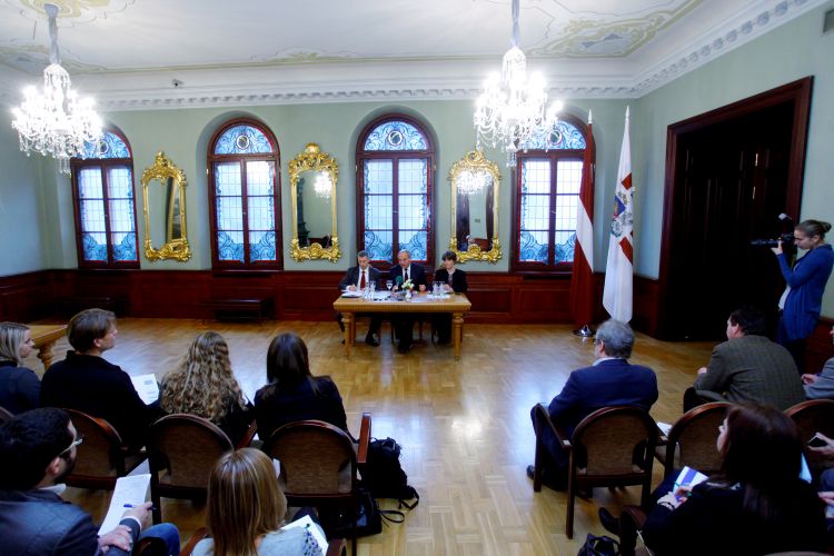 A meeting with journalists from 15 European Union member states to discuss Latvia’s accession to the euro zone