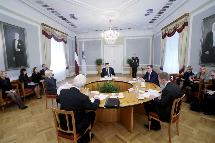 Meeting with Madam Speaker of the Saeima Ināra Mūrniece, Prime Minister Māris Kučinskis, Minister of Foreign Affairs Edgars Rinkēvičs and Chairman of the Saeima Foreign Affairs Committee Ojārs Ēriks Kalniņš