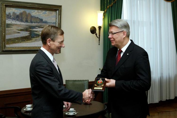 A meeting with Reserve Lt Benita Feldmane of the Latvian Association of Reserve Officers and the Board Member of the Norwegian Reserve Officers' Association, Erik Irgens