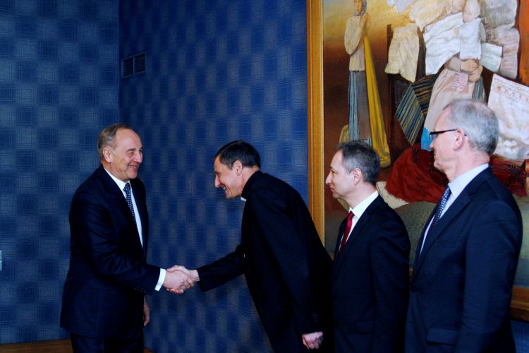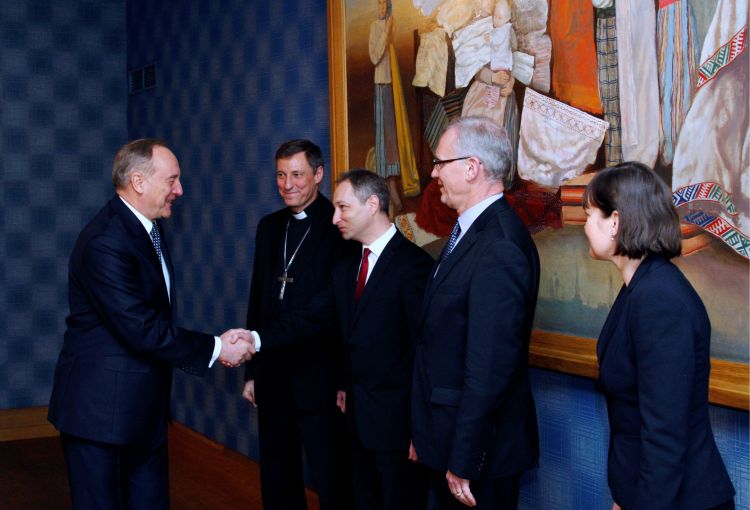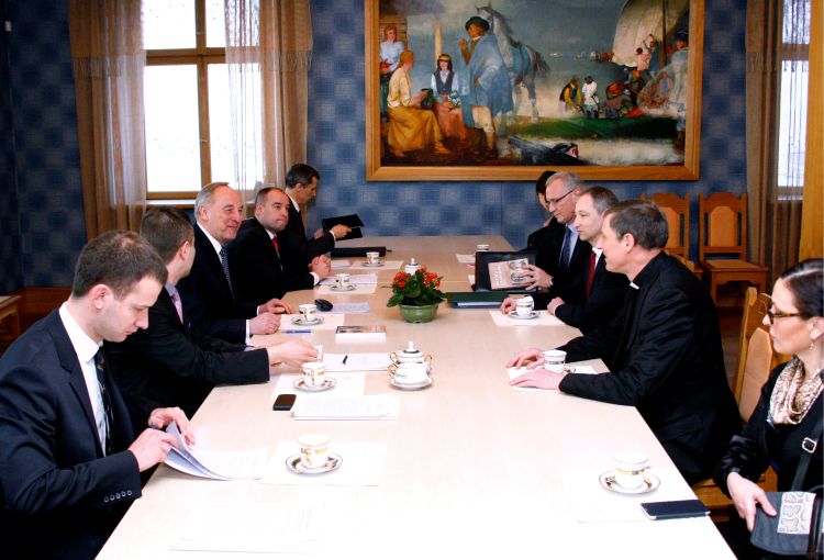 A meeting with Roman Catholic Archbishop Zbigņevs Stankevičs, Justice Minister Jānis Bordāns, and the state secretary of the Latvian Foreign Ministry, Andris Teikmanis
