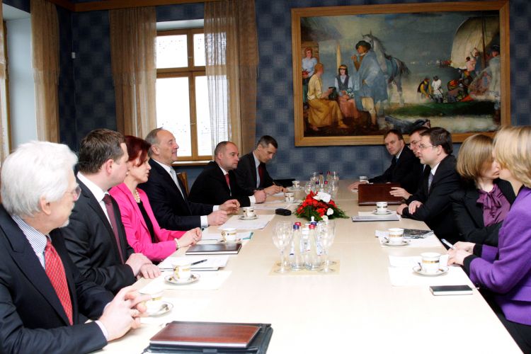 A meeting with Saeima Speaker Solvita Āboltiņa, Prime Minister Valdis Dombrovskis, Foreign Minister Edgars Rinkēvičs, and Saeima Foreign Relations Committee chairman Ojārs Ēriks Kalniņš
