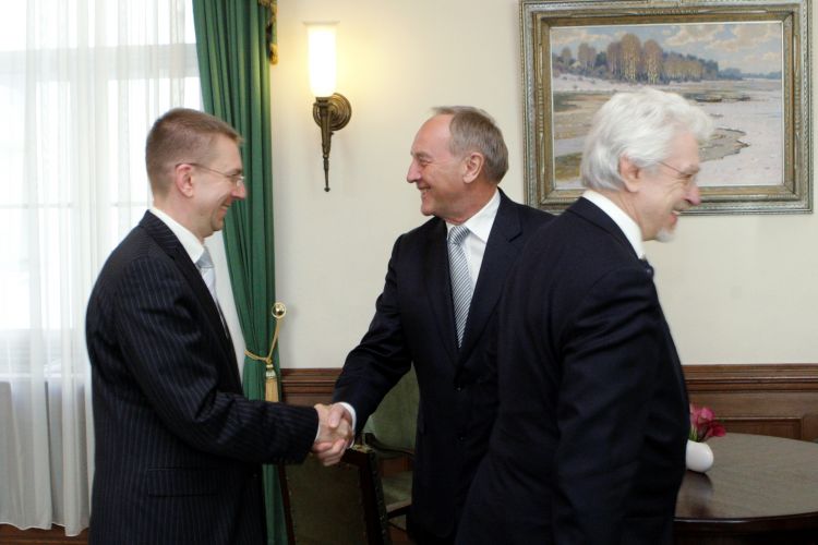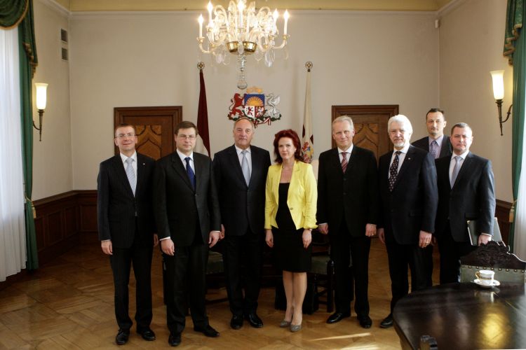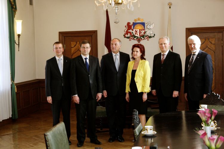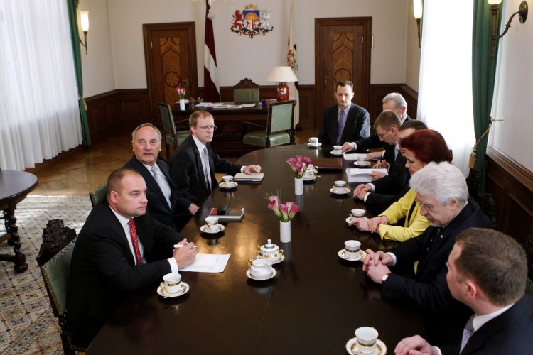 A meeting with Saeima Speaker Solvita Āboltiņa, Prime Minister Valdis Dombrovskis, Saeima Foreign Relations Commission chairman Ojārs Kalniņš, and Foreign Minister Edgars Rinkēvičs