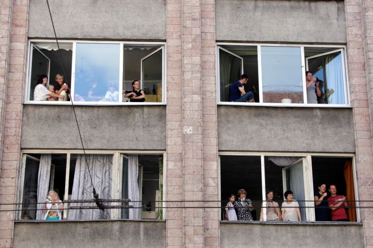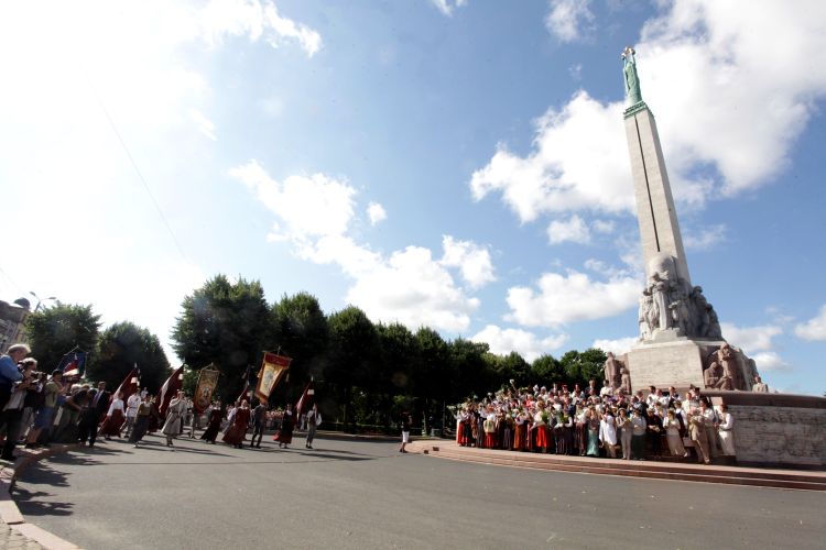 Participating in the procession of the participants of the 25th General Latvian Song and 15th General Latvian Dance Festival