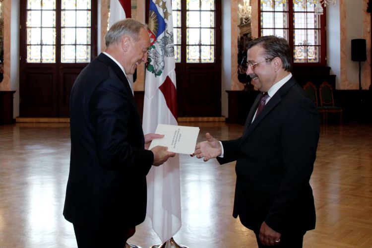 Presentation of letters of accreditation to Latvia’s ambassador extraordinary and plenipotentiary to the Czech Republic Alberts Sarkanis
