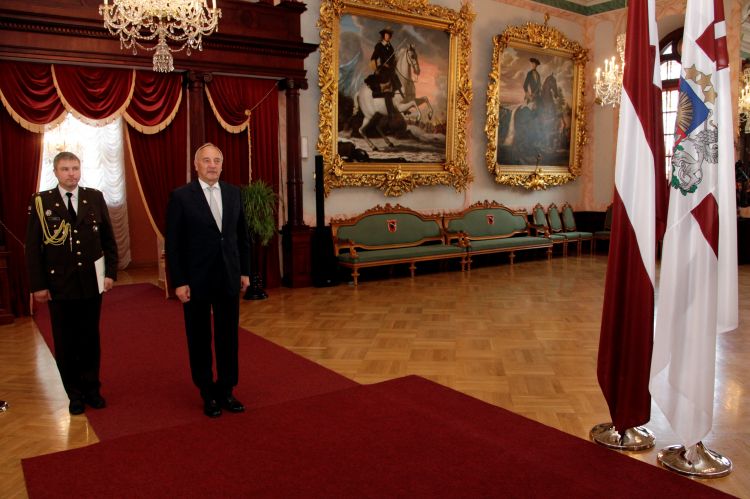 Protocol information: presidential protocol duties and other work details, proper ways to address the president of Latvia, use of presidential standard, protocol during visits, guidance on diplomatic gifts and dress code.