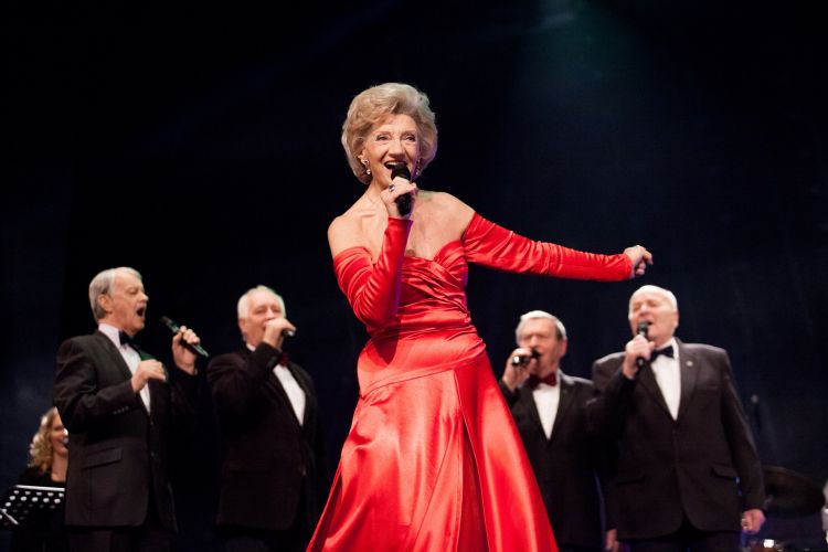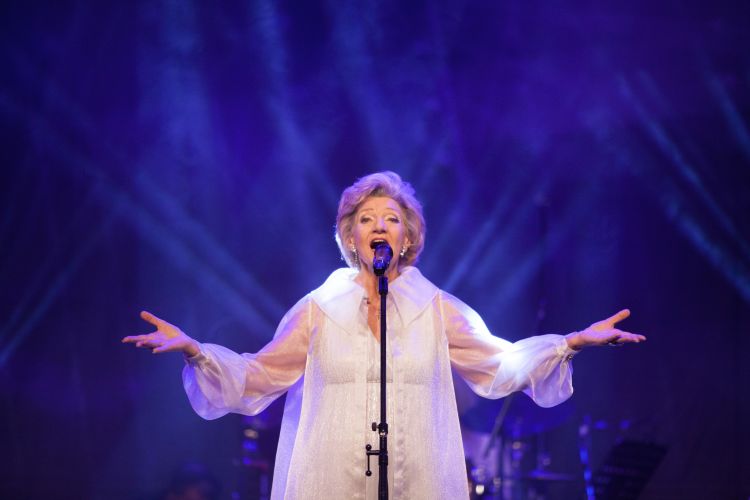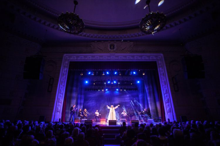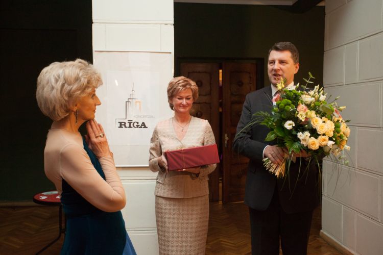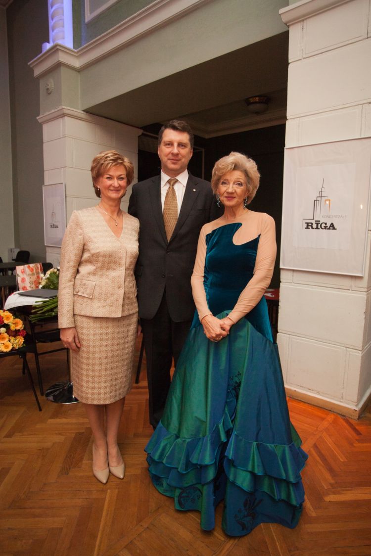 The President of Latvia and the First Lady of Latvia Mrs. Iveta Vējone attend the 75th anniversary concert of singer Ms. Margarita Vilcāne