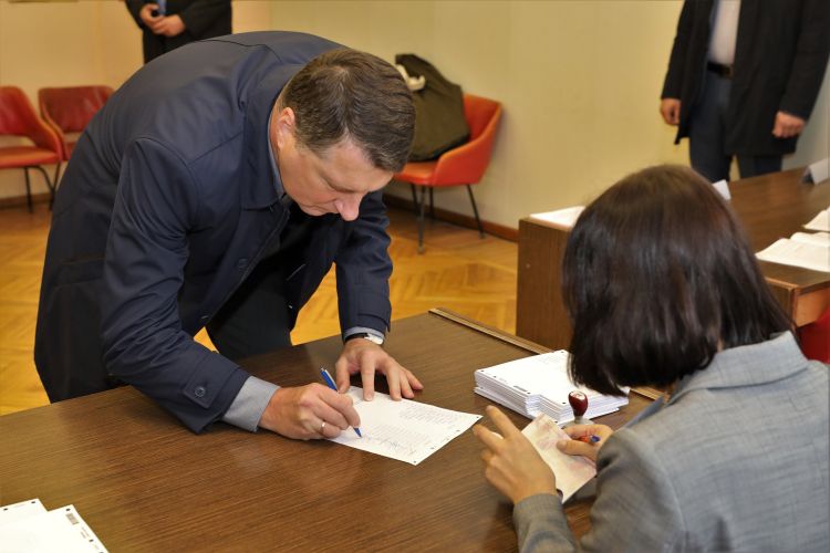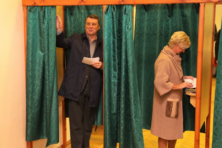 President of Latvia Raimonds Vējonis and First Lady of Latvia Iveta Vējone participate in the elections of 13th Saeima