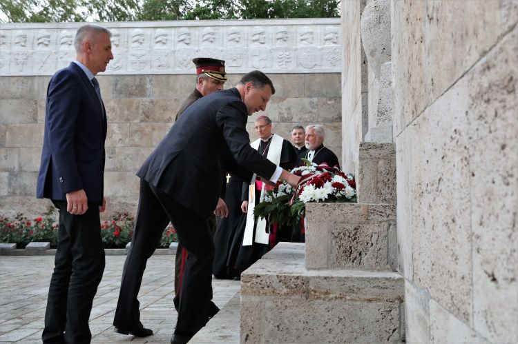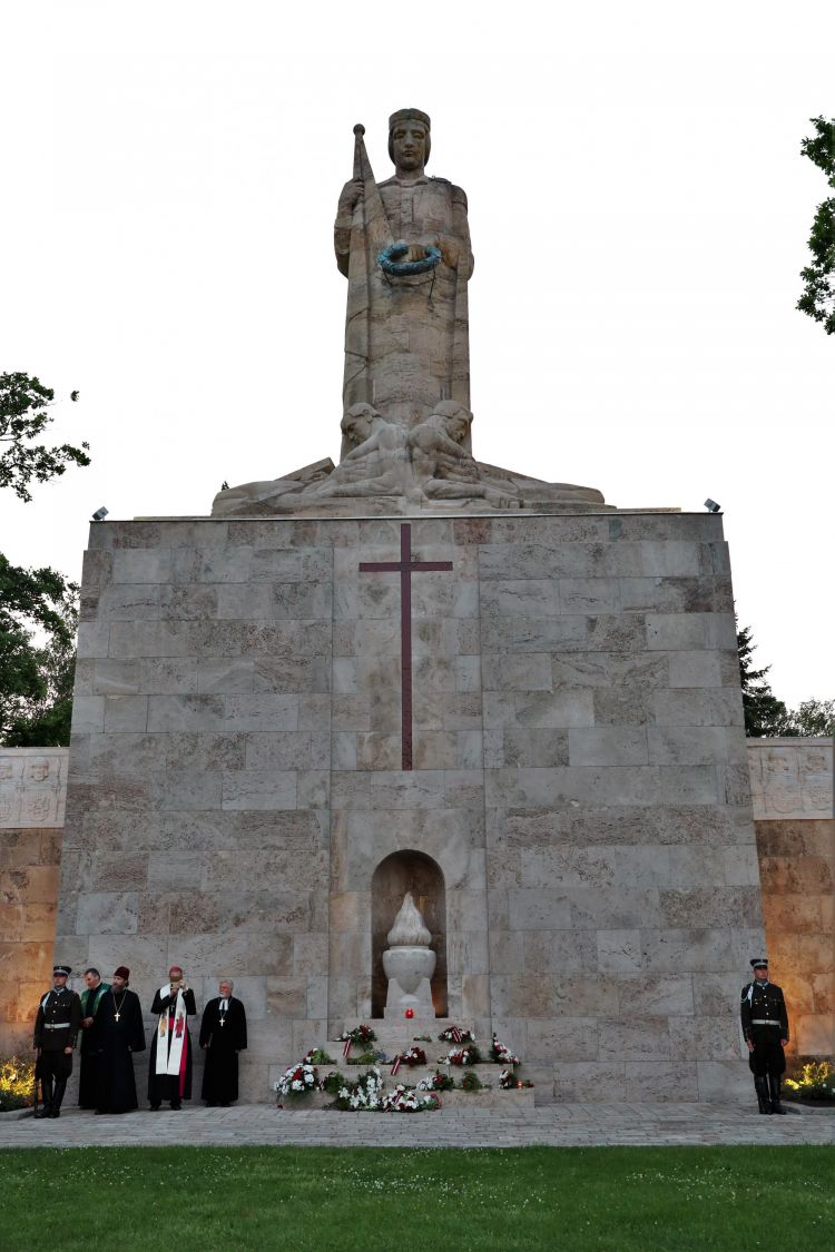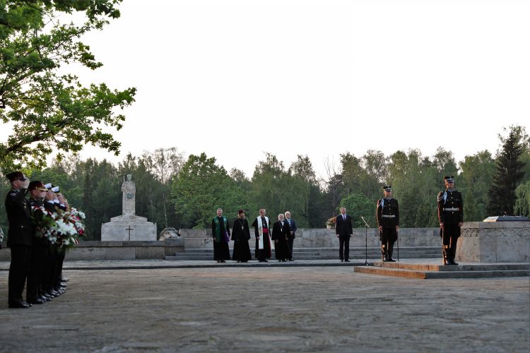 President of Latvia Raimonds Vējonis participates in the ceremonial opening of the restored Great Cross at the Riga Brethren Cemetery