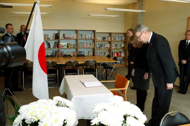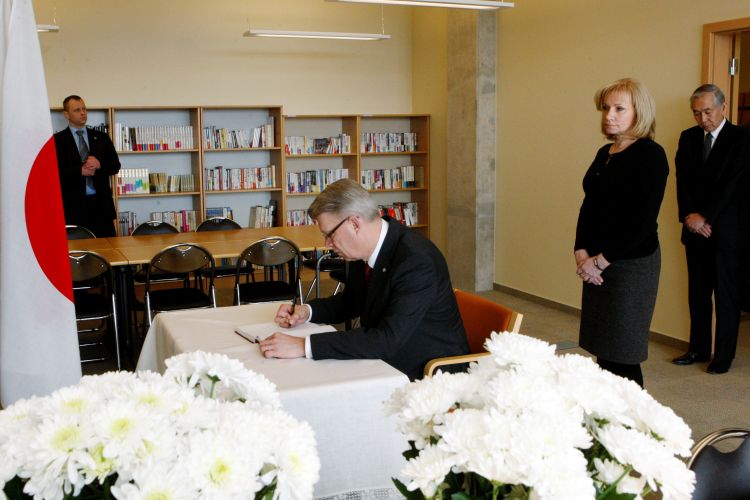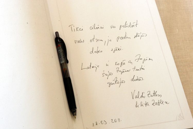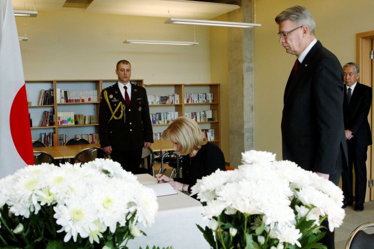 Signing a book of condolences at the Japanese Embassy