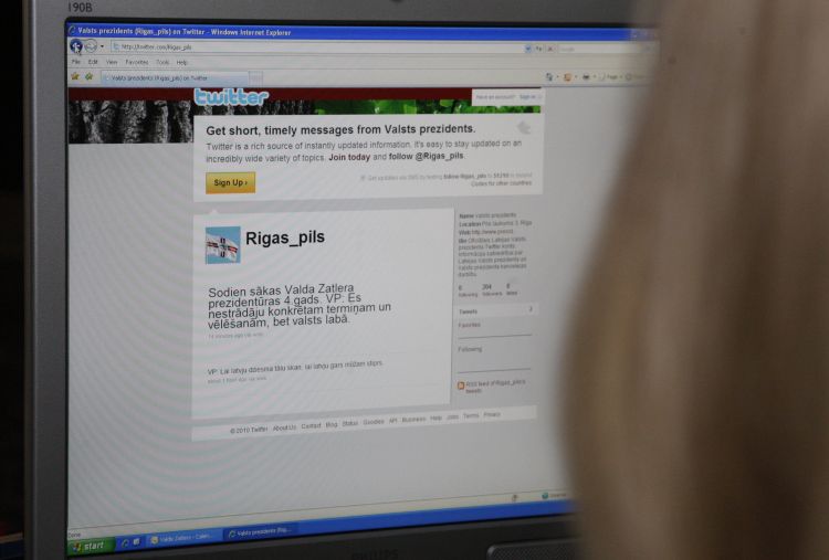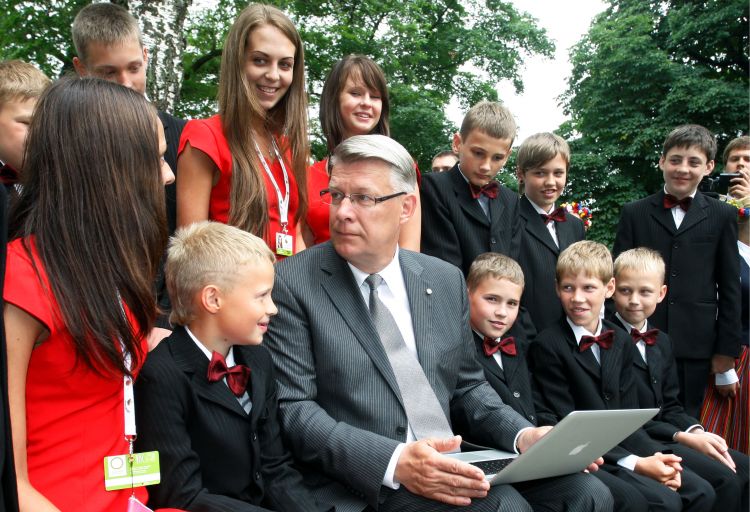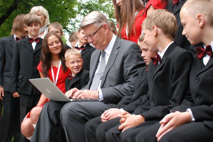 Valdis Zatlers writes the first message in Twitter during the meeting with the organizers and representatives of the participants of the X Latvian School Youth Song and Dance Festival