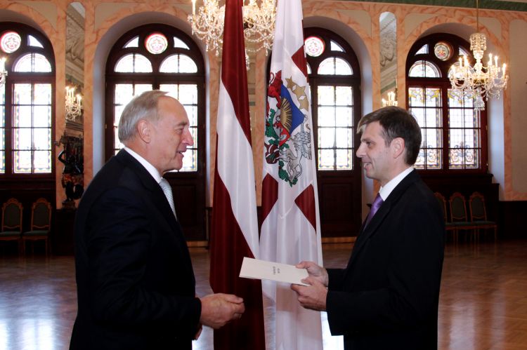 Akreditācijas vēstuļu pasniegšana Latvijas ārkārtējam un pilnvarotam vēstniekam Japānā Normanam Penkem
