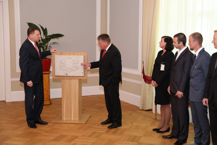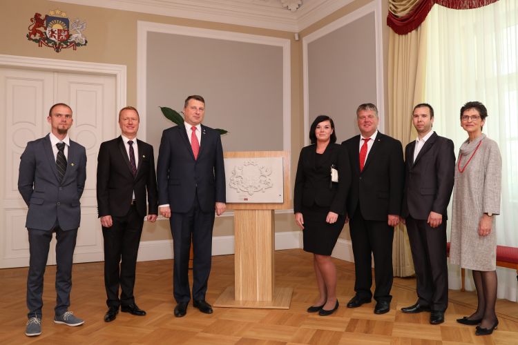 Latvijas Republikas ģerboņa dāvināšana Valsts prezidenta kancelejai, projekta “SAKRET ģerboņi Latvijas simtgadei” ietvaros