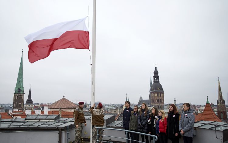 Polijas valsts neatkarības atjaunošanās dienā Rīgas pils Svētā Gara tornī pacelts arī Polijas karogs. Karoga pacelšanā piedalījās Rīgas Itas Kozakēvičas Poļu vidusskolas skolēni.
