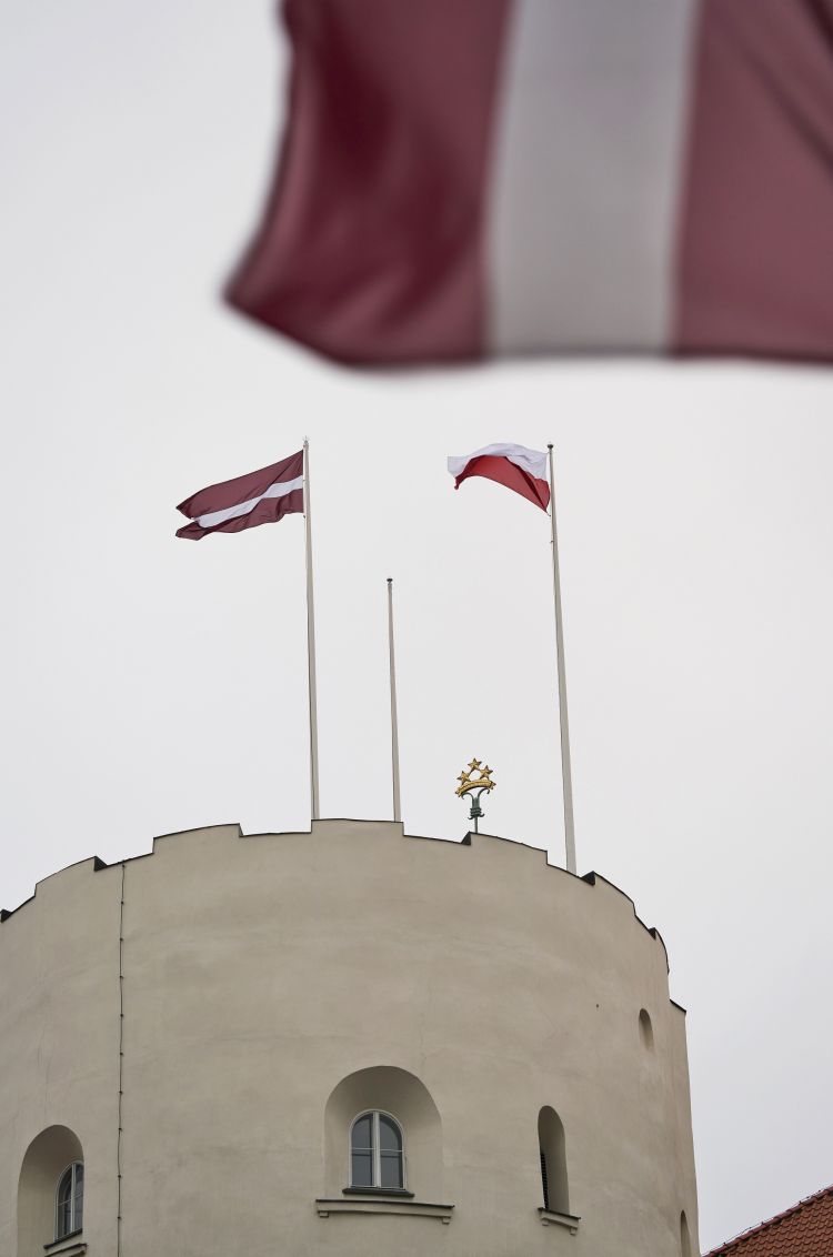 Polijas karoga pacelšana Rīgas pils Svētā Gara tornī