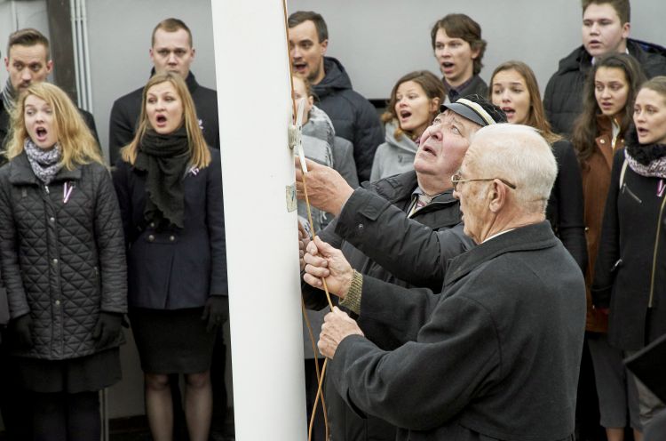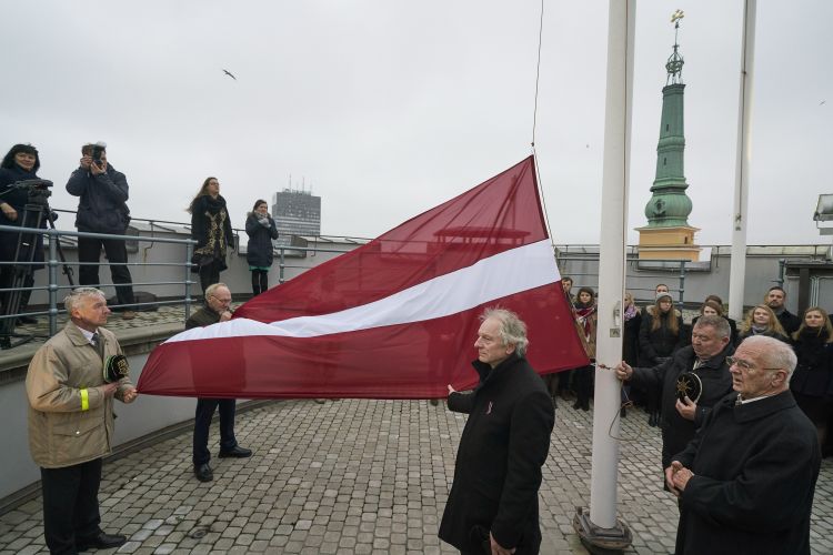 Svinīgā karoga maiņas ceremonija par godu 30. gadadienai, kopš Rīgas pils Svētā Gara tornī pirmo reizi pēc okupācijas gadiem tika pacelts sarkanbaltsarkanais Latvijas valsts karogs