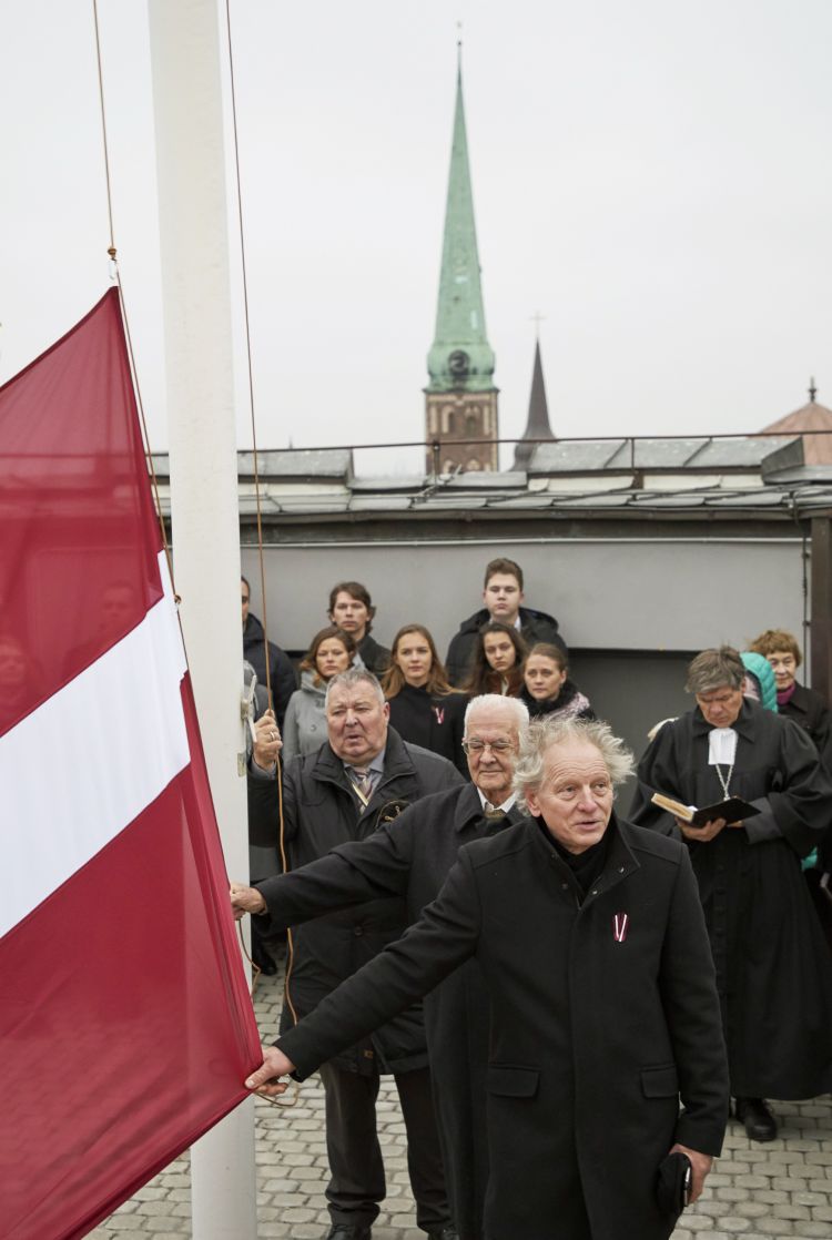 Svinīgā Latvijas karoga maiņas ceremonija Rīgas pils Svētā Gara tornī