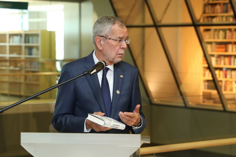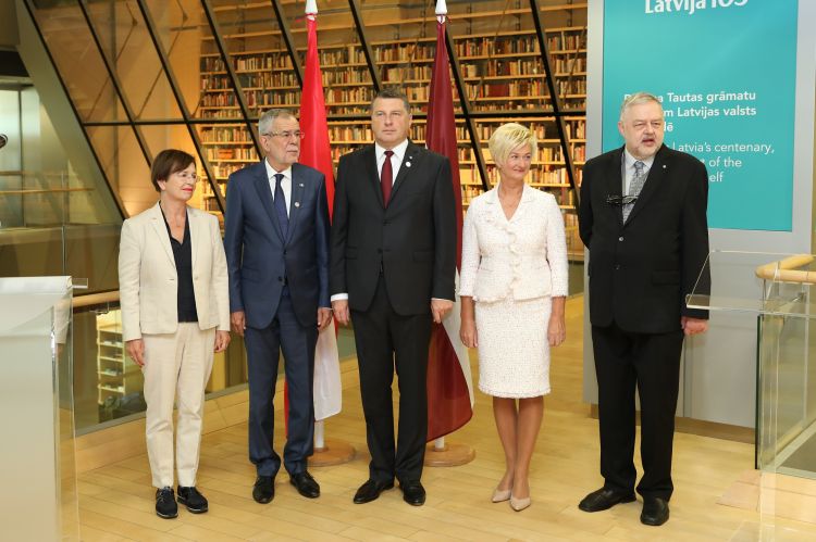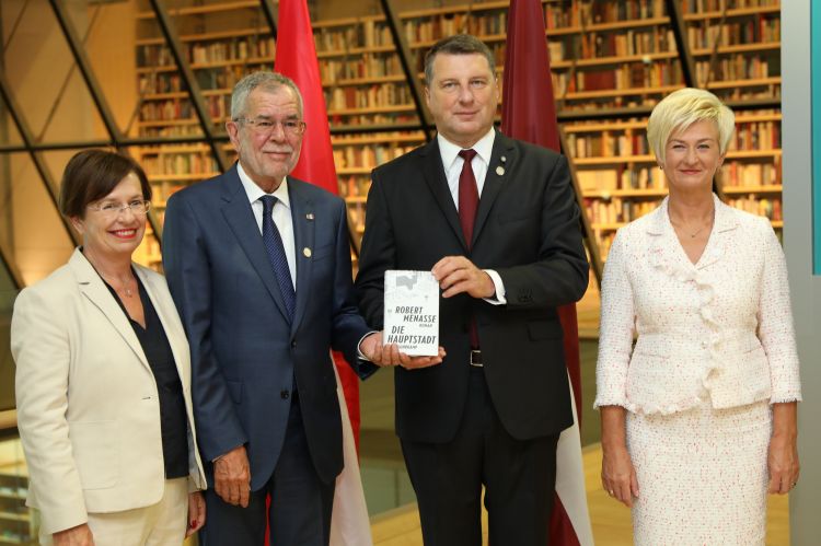 Valsts prezidenta un Ivetas Vējones kundzes dalība Austrijas prezidenta V.E. Aleksandra van der Bellena (H.E. Mr Alexander Van der Bellen) grāmatas dāvināšanas ceremonijā Tautas grāmatu plauktam