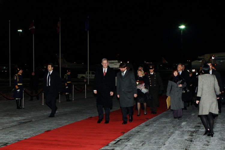 Valsts prezidenta un Lilitas Zatleres sagaidīšana Bukarestes lidostā valsts vizītes ietvaros Rumānijā