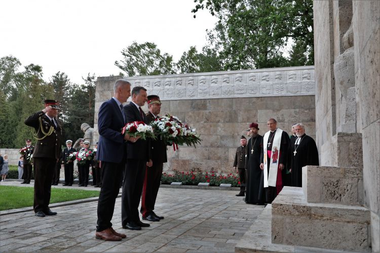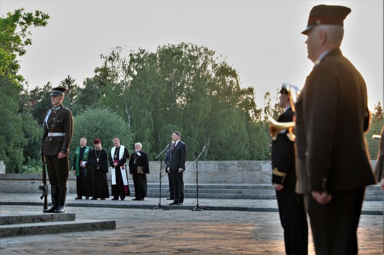 Valsts prezidents Raimonds Vējonis piedalās atjaunotā lielā Krusta zīmes svinīgajā atklāšanas ceremonijā Rīgas Brāļu kapos