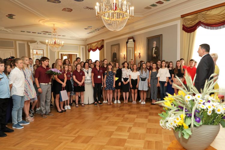 Valsts prezidents Raimonds Vējonis Rīgas pilī sveic projekta “Sveika, Latvija!” dalībniekus