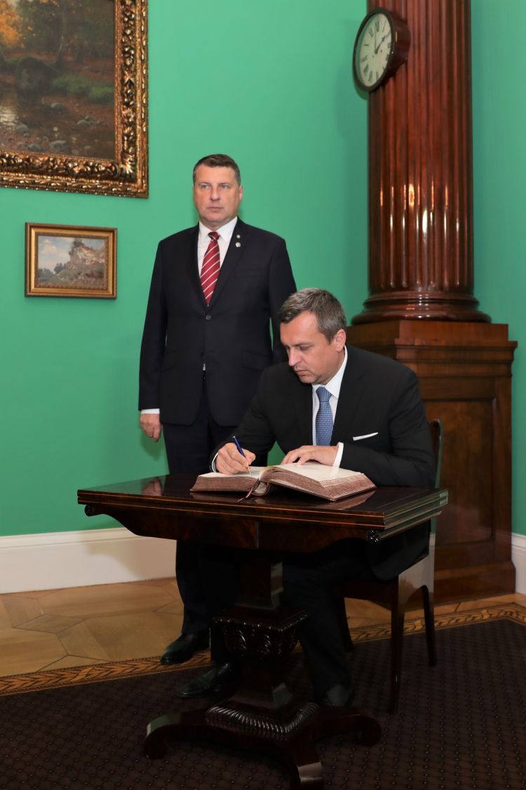 Valsts prezidents Raimonds Vējonis Rīgas pilī tiekas ar Slovākijas Nacionālās padomes priekšsēdētāju Andreju Danko