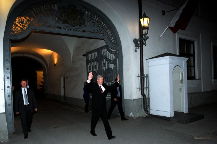 Valsts prezidents Valdis Zatlers tiekas ar cilvēkiem pie Rīgas pils pēc paziņojuma LTV un LR