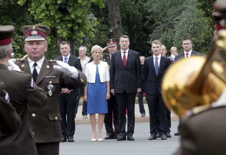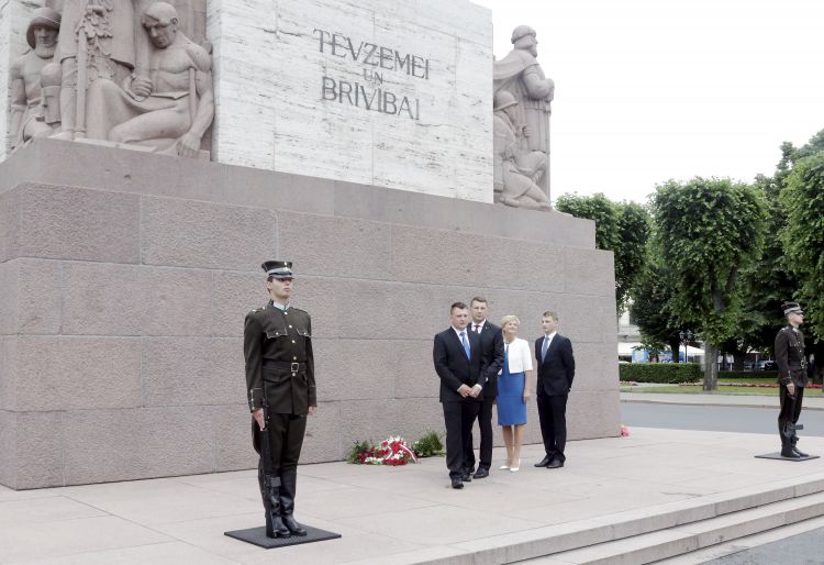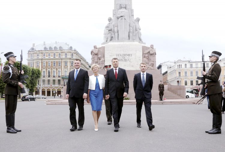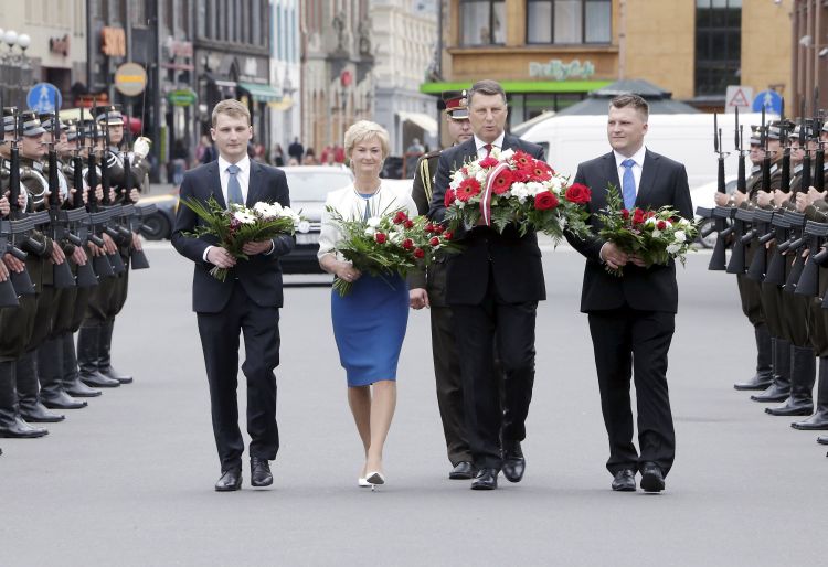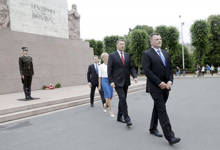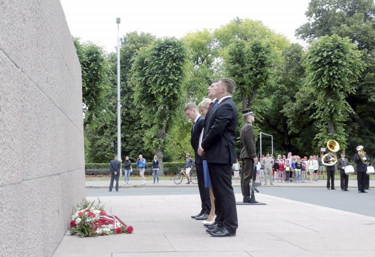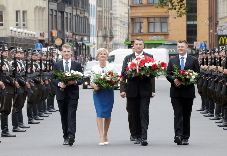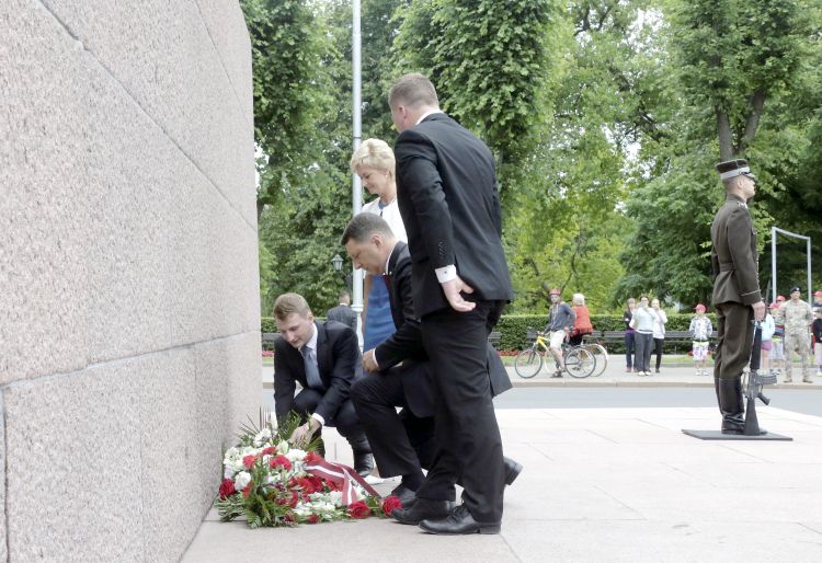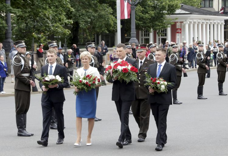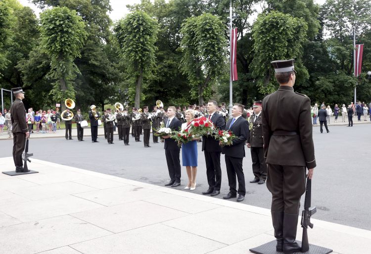 Ziedu nolikšanas ceremonija pie Brīvības pieminekļa